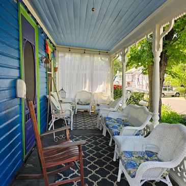 Sunny days guarantee that our porch will be full of guests enjoying a drink or treat. On not-so-sunny days, we also offer comfortable seating inside our cafe with wifi, books, and games!